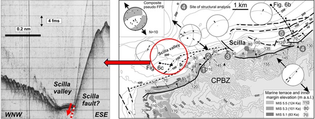 Nonostante l’area dello stretto sia stata negli anni molto studiata da un punto di vista geologico-geotecnico, servono ancora approfonditi studi e un’analisi mesostrutturale specifica per il progetto Ponte. I pochi dati disponibili, non basandosi su dati ad hoc sufficienti e dettagliati, non sono adeguati soprattutto in relazione alle faglie sottomarine ovvero, al rischio sismico associato a un’opera di tale complessità. Mi riferisco in particolare alla faglia di Scilla (vedi figura 4) che meriterebbe una trattazione approfondita e specifica mettendo in relazione la faglia stessa con le strutture del Ponte (soprattutto del pilone e del blocco di ancoraggio lato Calabria) interpretando, con modelli matematici avanzati, l’interazione della faglia stessa con le strutture in caso di rimobilitazione.